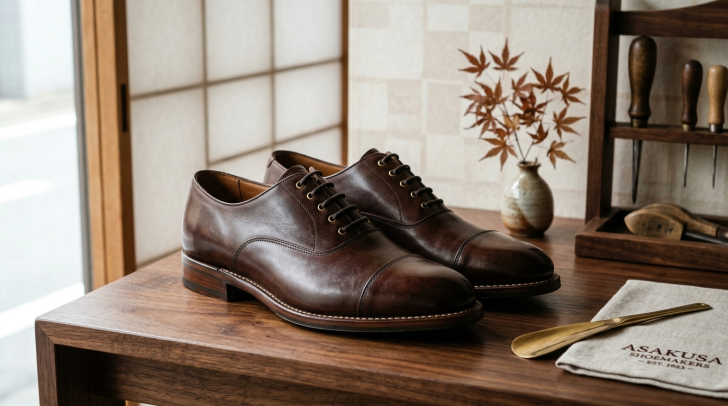 浅草靴誂(アサクサカチョウ)は、2009年にスタートした日本製グッドイヤーウェルト製法ドレスシューズブランドで、全国16か所以上の主要百貨店で取り扱われています。5万円台という価格帯で本格的な革靴が手に入る点、さらに修理を繰り返せば長年愛用できる点が大きな魅力です。