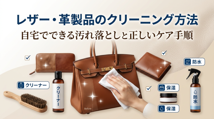 大切なレザー製品についた汚れ、どう落とせばいいか迷っていませんか?革は素材の特性上、間違ったクリーニング方法を選ぶとシミや色落ち・ひび割れにつながってしまうこともあります。この記事では、革の種類別クリーニング方法から、自宅でできる汚れ落としの手順、おすすめのレザークリーナーまで、革製品を長く美しく使い続けるための知識をすべて解説します。