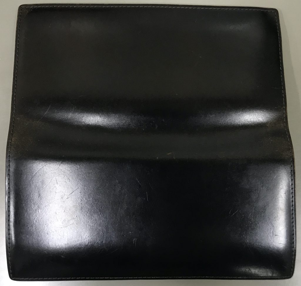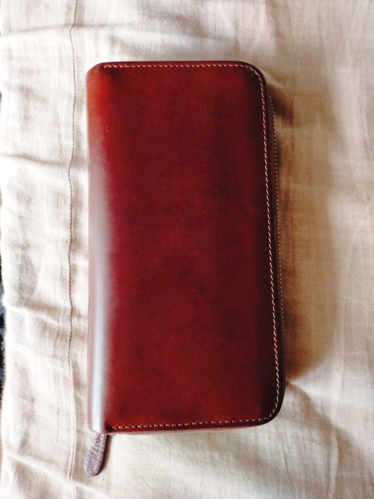 ▲ GANZOコードバン長財布5年後の外観。艶と光沢が増し、傷も目立たなくなる/おやすみ東京 より引用