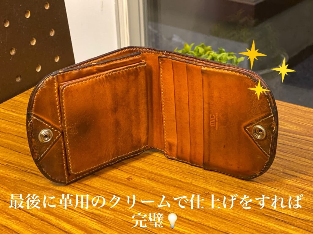 - 最後に革用クリームを薄く塗って保湿ケアをする