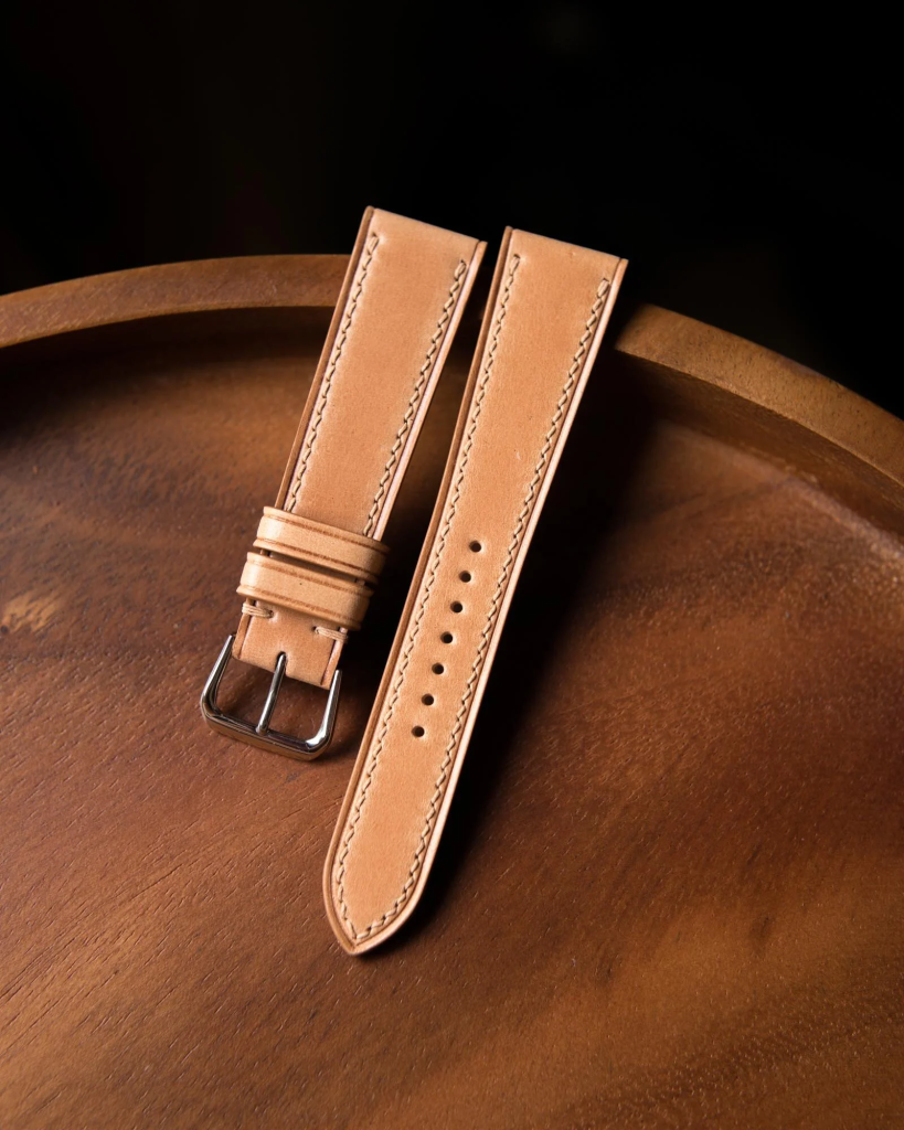Watch strap makers worldwide prize Shinki Hikaku shell cordovan for its combination of elegance, durability, and aging character. Singapore-based Delugs — which has sold over 100,000 straps to watch collectors globally — notes that shell cordovan is particularly at home as a watch strap because it tends to ripple rather than crease, and that Shinki Hikaku’s version is “extremely clean and uniform,” able to show off cool tones and depth of colour in ways that other shell cordovans cannot.